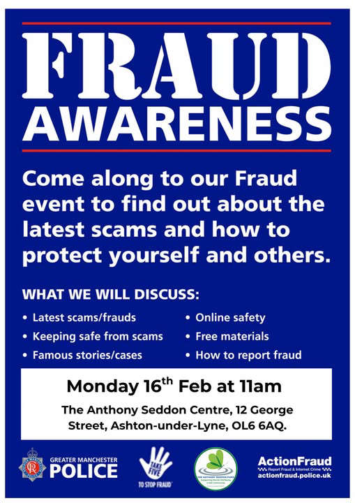 The Anthony Seddon Fund in Ashton are hosting a FRAUD AWARENESS SESSION on Monday 16th Feb.