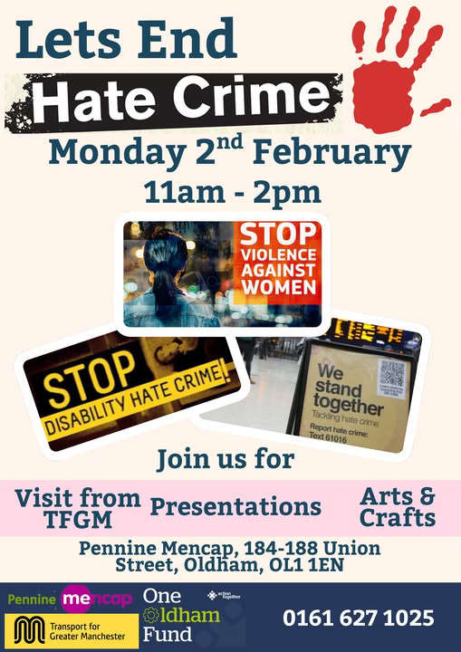 Pennine Mencap have been lucky enough to receive some funding from Action Together to host an event for Hate Crime Awareness Week.