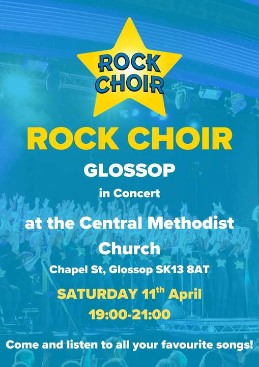 Join in an evening of music, energy, and community as Rock Choir Glossop performs live at Central Methodist Church, Glossop.