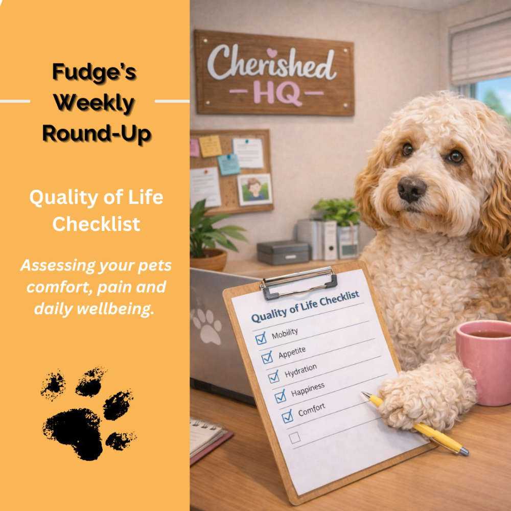 Cherished Companions weekly round-up from chief office dog Fudge.